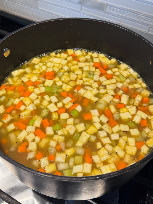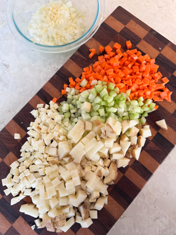 • Cut all the veggies the same size to make sure they soften evenly. If your veggies are too big, you will have big raw chunks of some veggies or crunchy bits. I like that it’s all soft.
